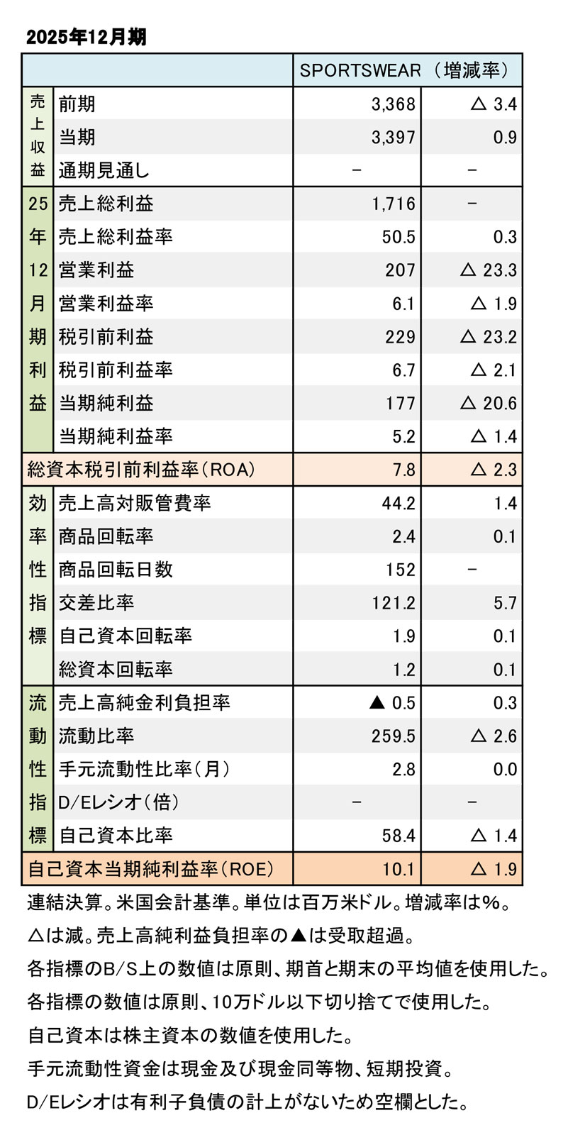 連結の売上収益は、33億9,700万米ドル(約5,299億3,200万円、1米ドル=156円で換算)、0.9%増と微増した。粗利率は50.5%(0.3ポイント増)と改善したが、経費増の影響で、営業利益は2億700万米ドル(約322億9,200万円、同)、23.3%減の減益となった。同様に、税引前利益は2億2,900万米ドル(約357億2,400万円、同)、23.2%減となった(表1を参照)。