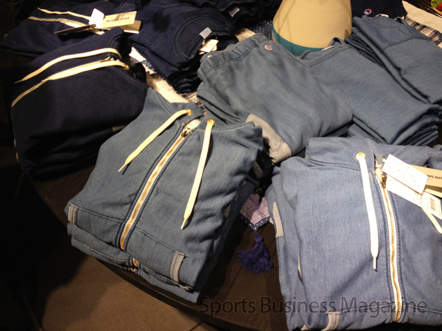 品揃えは、「チャンピオン」のブランドホルダーでカジュアルラインを企画・生産するヘインズブランズ ジャパンの商材とゴールドウインの企画商材をおよそ半分ずつ取り合わせて構成した。男女比率はおおよそ6対4でメンズが多いという。
